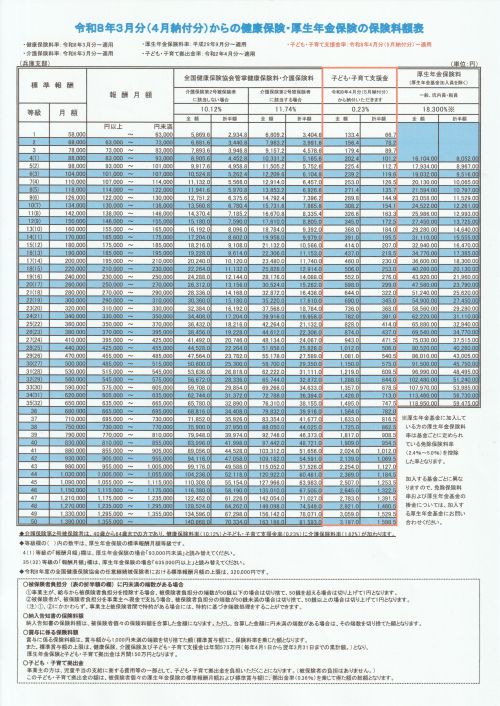 ※ 同協会兵庫支部の「令和5年3月分(4月納付分)からの健康保険・厚生年金保険の保険料額表」はこちらからどうぞ。